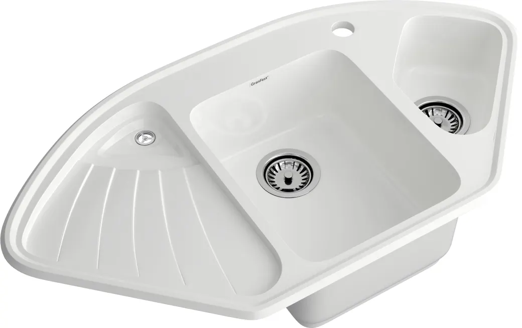 - Угловая форма мойки: Оптимизирует использование кухонного пространства, что особенно актуально для малогабаритных помещений.