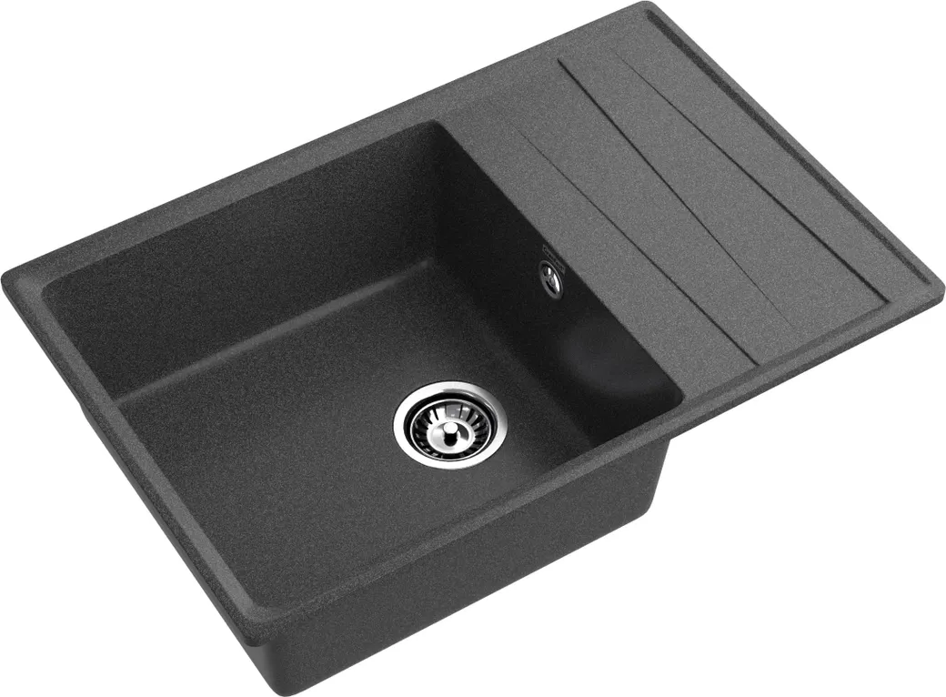 - Эстетичный дизайн: Мойка из мрамора графитового цвета прекрасно сочетается с различными материалами и цветами кухонных гарнитуров.