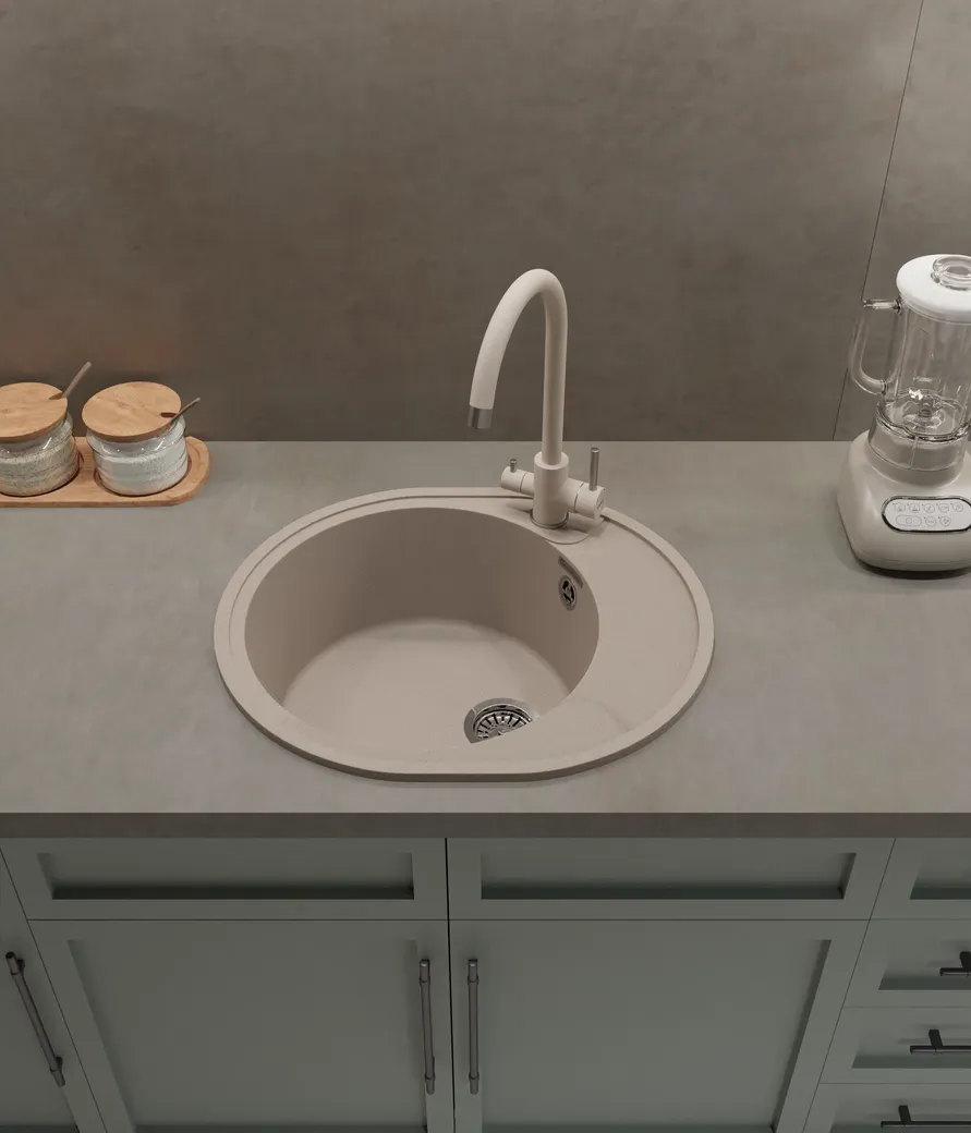 - Песочный цвет мойки: Эстетически привлекательный оттенок, который легко впишется в любой интерьер.