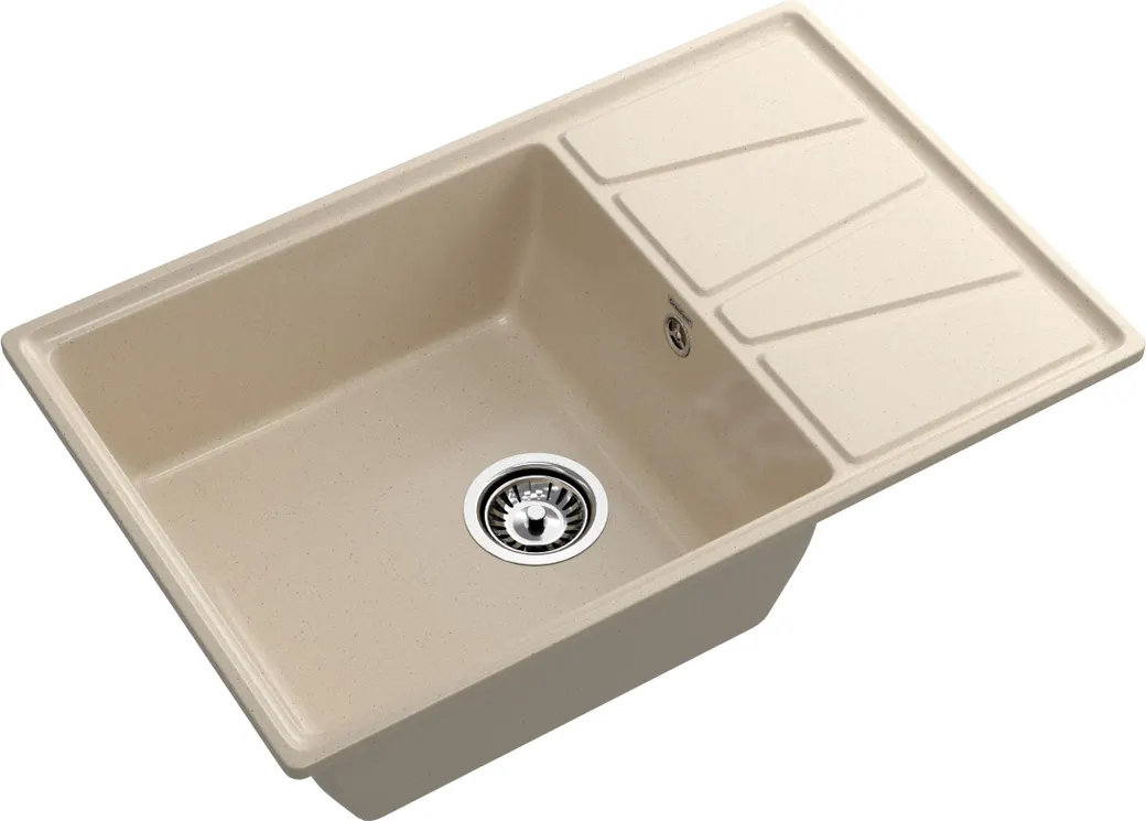 - Эстетичный дизайн: Прямоугольная форма и цвет кашемир делают мойку стильной и современной.