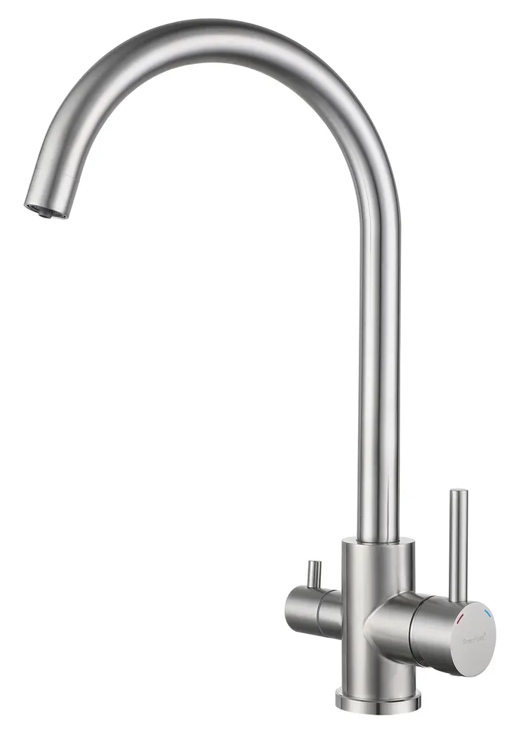 Смеситель для кухни от GranFest — это идеальное сочетание стиля и функциональности. Кухонный смеситель из нержавеющей стали с U-образным изливом и краном для питьевой воды обеспечит комфорт и надежность в использовании.