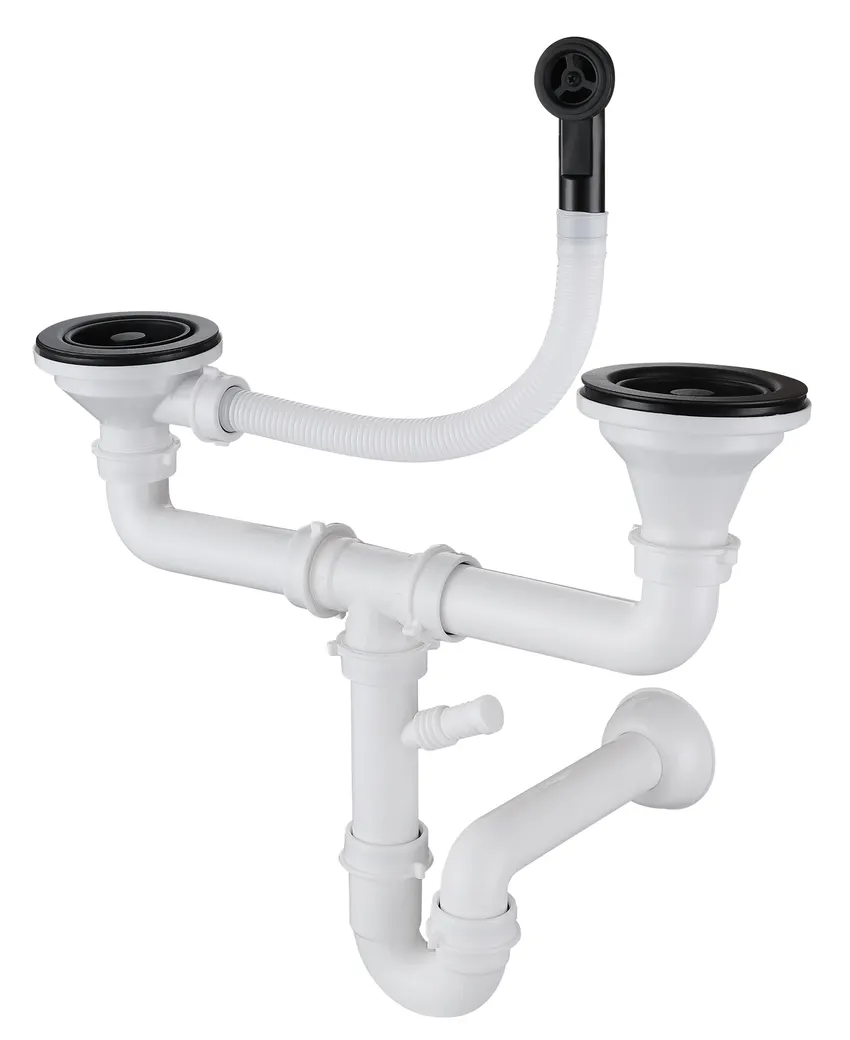 GRANFEST Сифон двойной 3 1/2" черный с круглым переливом и отводом арт. GF- арт-12G14PB4-P2A черн