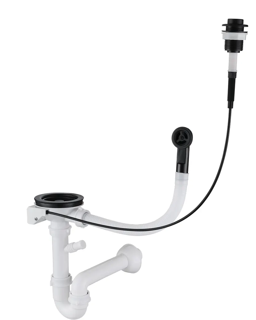 GRANFESTСифон одинарный 3 1/2" черный п/авт с круглым переливом и отводом арт. GF- арт-13PB2-P2 павт черн
