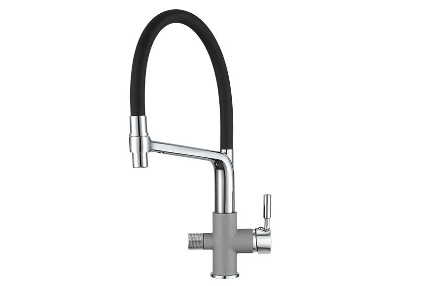 - Эстетичный внешний вид: Алюминиевая отделка придает кухонному смесителю современный и стильный вид, подходящий для любой кухни.