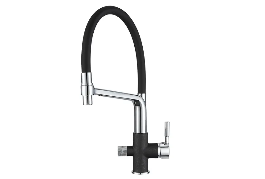 - Чистая вода всегда под рукой: Смеситель оснащен отдельным краном для питьевой воды, обеспечивая доступ к фильтрованной воде.