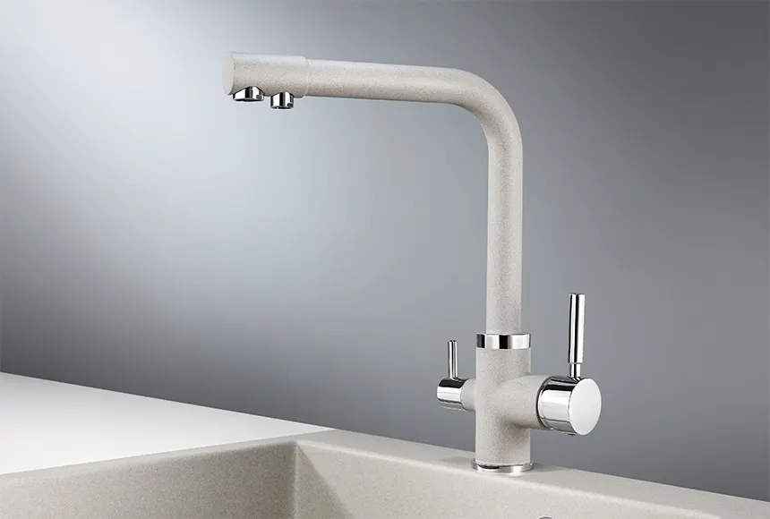 - Удобство и функциональность: Высокий излив позволяет легко мыть посуду любых размеров, а отдельный кран для питьевой воды предоставляет доступ к фильтрованной воде, что особенно удобно для приготовления пищи и напитков.