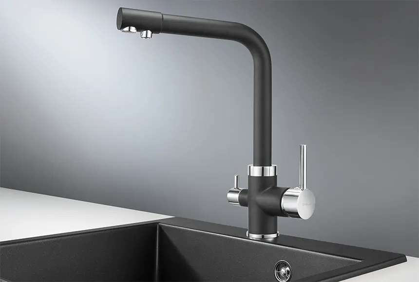 - Качество питьевой воды: Двухрычажная модель с краном для питьевой воды обеспечивает доступ к чистой фильтрованной воде, которая не смешивается с водопроводной.