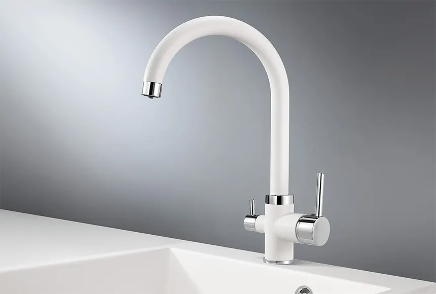 Смеситель для кухонной мойки Granula-2168 сочетает в себе стиль и функциональность. Этот кухонный смеситель, выполненный в белом цвете "Арктик", станет идеальным дополнением для любой современной кухни. Двухрычажная конструкция с отдельным краном для питьевой воды обеспечивает удобство и экономию пространства, а высококачественная латунь гарантирует долговечность.