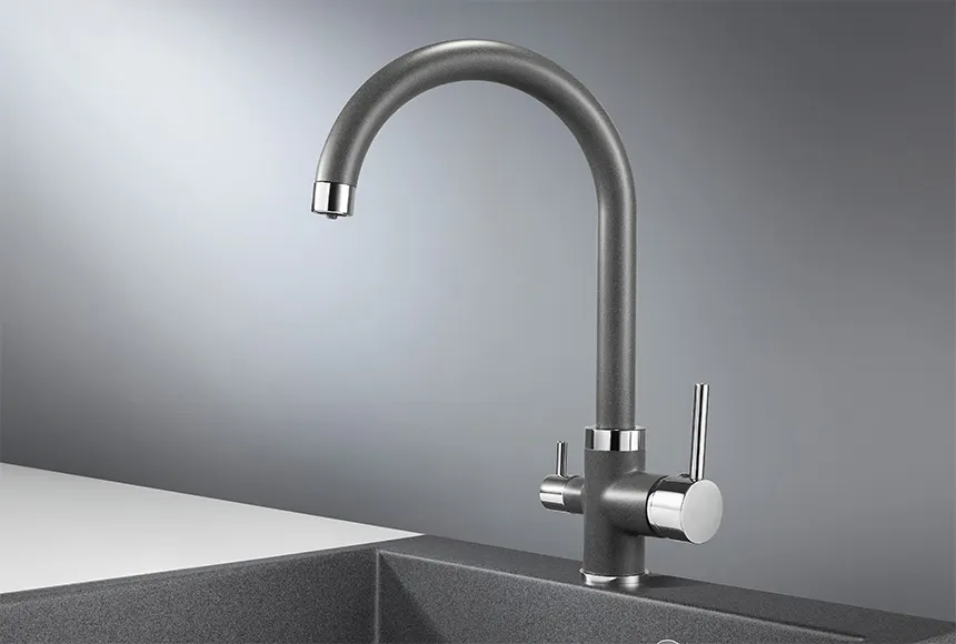 - Стильный дизайн: Графитовый цвет добавляет современности и легко сочетается с кухонными мойками в аналогичных оттенках.