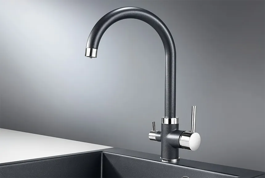 Кухонный смеситель Granula-2168, ШВАРЦ — это идеальное сочетание современного дизайна и функциональности. Этот смеситель для кухни изготовлен из прочной латуни, что гарантирует долговечность и надежность. Высокий излив обеспечивает удобство при мытье как мелкой, так и крупногабаритной посуды, а встроенный кран для питьевой воды позволяет получить чистую фильтрованную воду.
