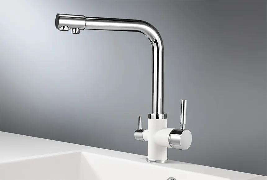 Смеситель для кухни Granula-3015, Хром/Арктик — это идеальное решение для тех, кто ценит стиль и функциональность. Двухрычажная конструкция с краном для питьевой воды обеспечивает комфортное использование и высокую гигиену.