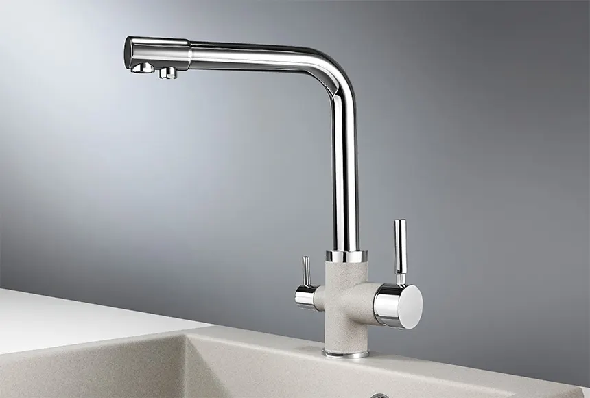 - Кран для питьевой воды: Возможность подключения фильтра для подачи чистой воды через отдельную трубку, что сохраняет вкус и качество питьевой воды.
