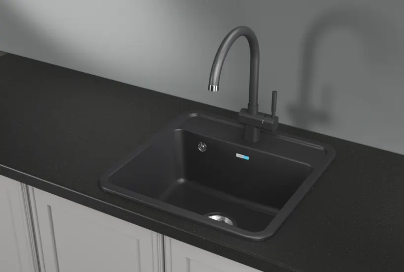 - Эстетичный дизайн: Стильный чёрный цвет и квадратная форма делают мойку Granula-5001 отличным дополнением для любой кухни, подчёркивая её современный стиль.