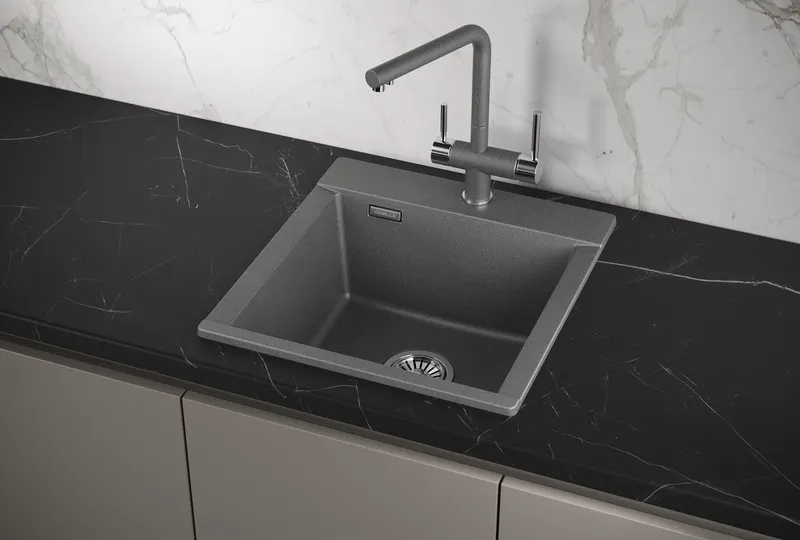 - Кухонная мойка из кварца: Материал кварц гарантирует устойчивость к царапинам и повреждениям, обеспечивая долгий срок службы.