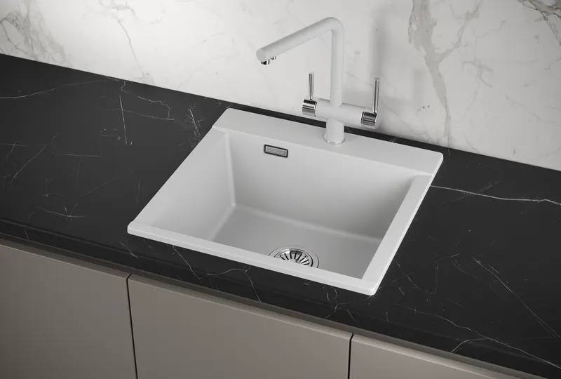 - Стильный дизайн: Белый цвет «Арктик» делает мойку универсальной для любого типа кухонь.