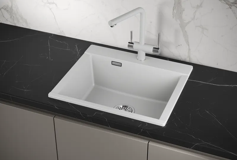 - Прочность и долговечность: Кухонная мойка из кварца устойчива к царапинам и механическим повреждениям, что продлевает срок её службы.