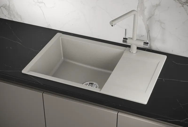 - Простота в уходе: Кварцевая поверхность легко чистится, что упрощает уход за мойкой.