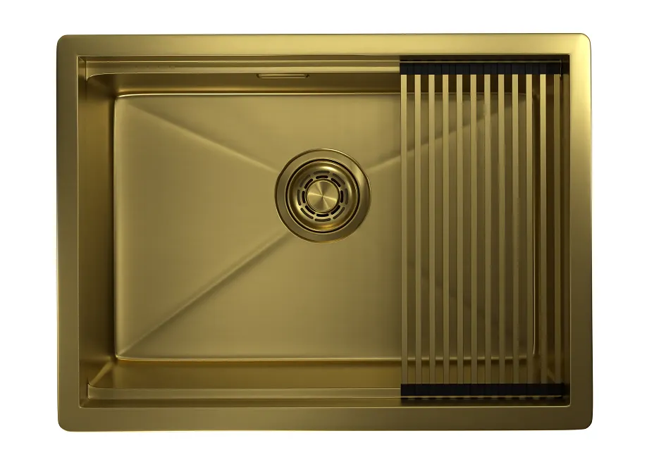 - Стальная кухонная мойка с долговечным покрытием: Нержавеющая сталь и покрытие "Золото сатин" обеспечивают стойкость к коррозии и эстетичный внешний вид.