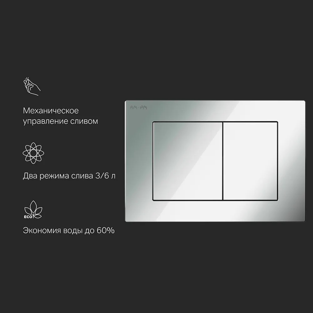 Двойной смыв - 3/6 л. Механический принцип работы все крепления в комплекте. Клавиша подходит для инсталляции AM.PM PrimeFit I012709. ""