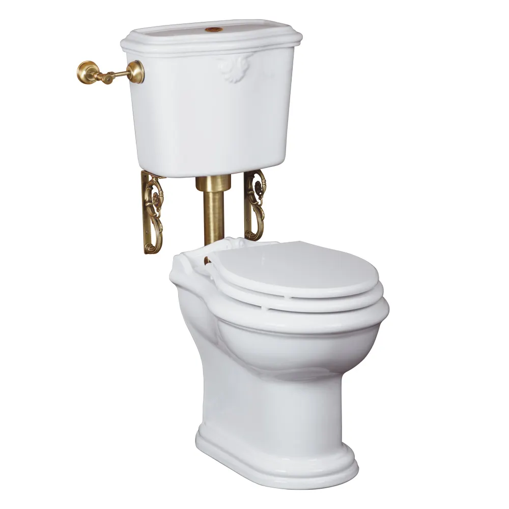 IMPERO Комплект унитаз напольный выпуск в стену, бачок низкий с кнопкой бронза, белый (БЕЗ КРЫШКИ) арт-31143