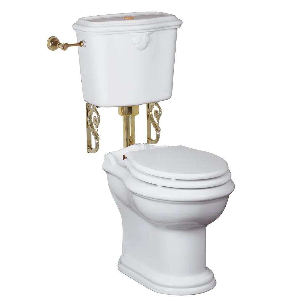 IMPERO Комплект унитаз напольный выпуск в стену, бачок низкий с кнопкой золото, белый (БЕЗ КРЫШКИ) арт-31144