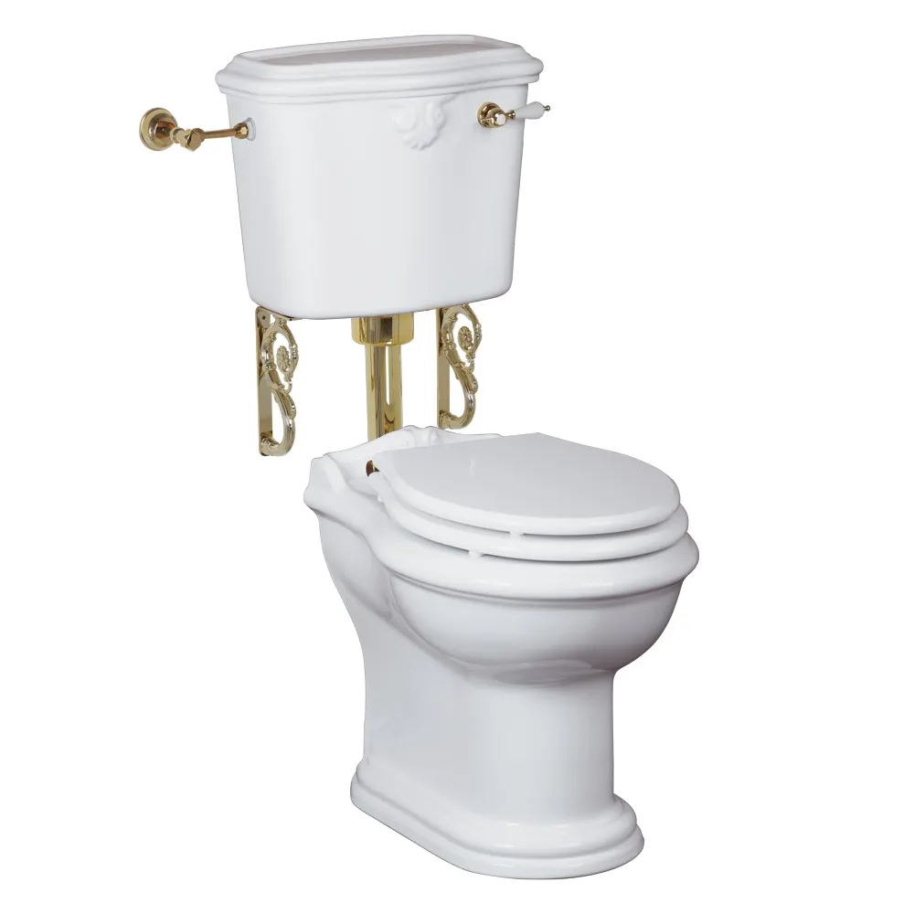 IMPERO Комплект унитаз напольный выпуск в стену, бачок низкий с ручкой золото, белый (БЕЗ КРЫШКИ) арт-31146
