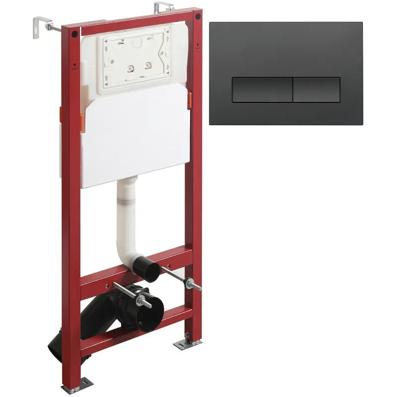 Инсталляция Agger ACC500+APB0244 для унитаза с Черной матовой клавишей смыва.Инсталляция для подвесного унитаза от немецкого бренда Agger. Поможет гармонично интегрировать подвесной унитаз в интерьер Вашей ванной комнаты. Обеспечит минимальный уровень шума и максимальный уровень комфорта при эксплуатации. В комплект входят все необходимые крепления. Объем смыва 3 и 6 литра позволяет экономить воду, снижая ее расход.Характеристики:Инсталляция: Цвет: красный. Материал: сталь, пластик. Размеры (ШхВхГ): 500х1325х220 мм. Монтажная высота: 1325 мм. Монтажная глубина: 165 мм. Объем смыва: 3/6 л. Диаметр слива: 90 мм. Диаметр переходника для слива: 110 мм. Подвод воды: сверху бачка. Метод крепления: в капитальную стену и пол. Межосевое расстояние под крепежные шпильки: 180-230 мм. Регулируемые по высоте ножки: от 0 до 200 мм. Максимально допустимая нагрузка 400 кг. Клавиша смыва: Цвет: черный матовый. Материал: пластик. Размеры (ШхВхГ): 240х160х10 мм. Управление: механическое. Режим слива воды: две кнопки (полный+эконом). В комплекте поставки: Инсталляция ACC500. Смывной бачок. Звукоизолирующая прокладка. Шумоизоляция. Крепления. Клавиша смыва APB0244. Инструкция.