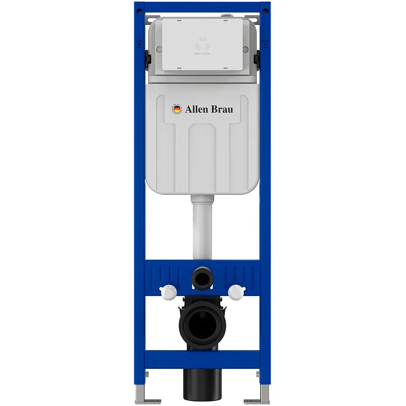 Инсталляция Allen Brau Pneumatic Slim 9.11102.20 для унитаза.Характеристики: Цвет: синий. Материал рамы: сталь с усиленными ребрами жесткости. Материал бачка: пластик HDPE (цельный). Наливной клапан: латунь. Размеры (ШхВхГ): 380х1117х260 мм. Управление: пневматическое. Подвод воды: верхний. Протестированная нагрузка: до 400 кг. Объем слива: 4/6 л. Давление: 0.1-20 бар. Регулируемые настенные кронштейны 135-190 мм. Ножки с цинковым покрытием регулируются от 0 до 150 мм. Фитинги: сливное колено Φ110, сливная труба, колпачковая крышка. Сливной колено регулируется вверх и вниз: 90-115 мм + спереди и сзади: 130-166 мм.