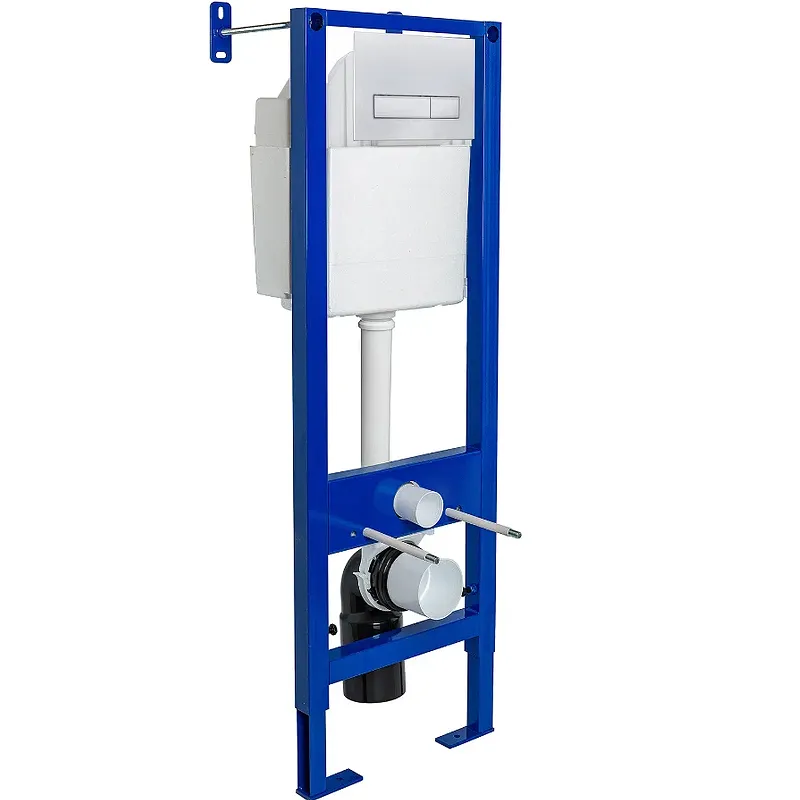 Инсталляция Berges Wasserhaus Atom 410 040339 для унитаза.Характеристики: Инсталляция: Материал: латунь, полипропилен С регулировкой по высоте. Расчетная нагрузка: 400 кг. Стальная рама с антикоррозийным покрытием. Межосевое расстояние под крепежные шпильки унитаза: 18 и 23 см. Бачок с функцией шумоподавления. Эконом слив: 3л. Полный слив: от 5,5 до 8,5л. Монтаж: к стене. Направление выпуска: горизонтальное. Стандарт подключения воды: G 1/2. Клавиша смыва: Цвет клавиши: белая. Форма кнопок: прямоугольная. Габариты (ШхВхД): 24,7x16,5х1,8 см. Материал: пластик. Управление: механическое. Количество режимов смыва: 2. В комплекте поставки: Инсталляция. Смывной бачок. Шумоизолирующая прокладка. Кнопка смыва. Комплект установки.