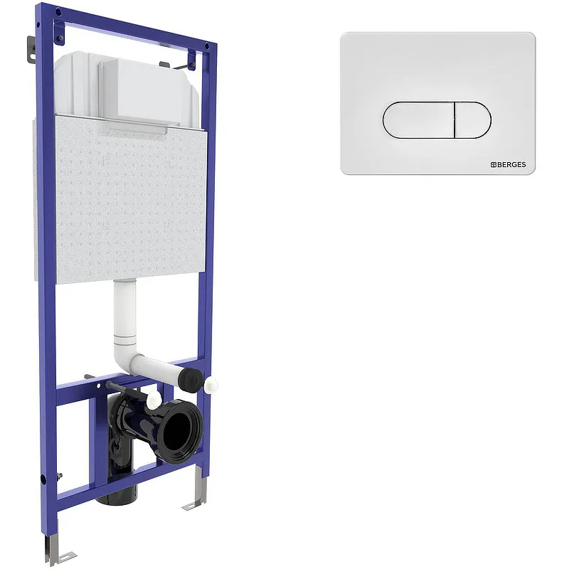 Инсталляция Berges Novum 525 040234 для унитаза.Характеристики:Инсталляция: Материал каркаса: металлический, окрашенный антикоррозийной эмалью. Материал бачка: полипропилен. Материал заливного крана: латунь. Нагрузка до 400 кг. Толщина бачка 80 мм. Объём резервуара воды 10 л с тепло- и шумоизоляцией. При давлении 3-5 бар уровень шума от 13 до 18 дБ. Подвод воды: сверху (G1/2 наружная). Направление выпуска: вертикальное (в пол). Объем смыва: 3/6 литра с возможностью регулировки. Межосевое расстояние под крепежные шпильки унитаза 18 и 23 см. Размеры (ШхВхД): 52.5х115-139х17.5 см. Ножки регулировки высоты из оцинкованной стали. Клавиша смыва: Цвет: белый Soft Touch. Материал: ABS-пластик. Размеры (ШхВхГ): 227х165х13 мм. Режим слива воды: две кнопки (режим эконом). Управление: механическое. В комплекте поставки: Инсталляция. Смывной бачок. Шумоизолирующая прокладка. Клавиша смыва. Комплект установки.
