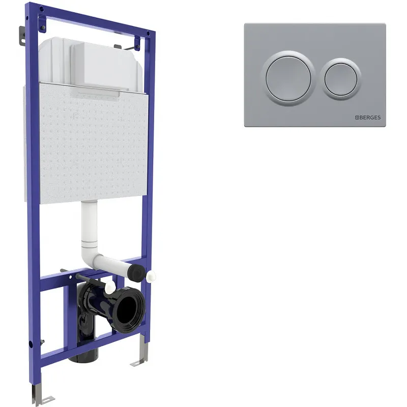 Инсталляция Berges Novum 525 040262 для унитаза.Инсталляция: Материал каркаса: металлический, окрашенный антикоррозийной эмалью. Материал бачка: полипропилен. Материал заливного крана: латунь. Нагрузка до 400 кг. Толщина бачка 80 мм. Объём резервуара воды 10 л с тепло- и шумоизоляцией. При давлении 3-5 бар уровень шума от 13 до 18 дБ. Подвод воды: сверху (G1/2 наружная). Направление выпуска: вертикальное (в пол). Объем смыва: 3/6 литра с возможностью регулировки. Межосевое расстояние под крепежные шпильки унитаза 18 и 23 см. Размеры (ШхВхД): 52.5х115-139х17.5 см. Ножки регулировки высоты из оцинкованной стали. Клавиша смыва: Цвет: хром матовый. Материал: ABS-пластик. Размеры (ШхВхГ): 225х165х11.4 мм. Режим слива воды: две кнопки (режим эконом). Управление: механическое. В комплекте поставки: Инсталляция. Смывной бачок. Шумоизолирующая прокладка. Клавиша смыва. Комплект установки.