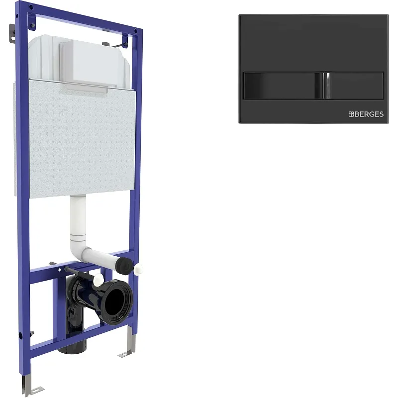 Инсталляция Berges Wasserhaus Novum L6 040216 для подвесного унитаза со смывным бачком и Черной глянцевой клавишей смыва.Характеристики: Инсталляция: Материал бачка: полипропилен. Материал заливного крана: латунь. Материал слива: полипропилен. Габариты (ШхВxГ): 525x1390х175 мм. Толщина бачка 80 мм (подходит для установки в малогабаритных помещениях). Металлический каркас, окрашенный антикоррозийной эмалью. Резервуар воды объемом 10 литров с тепло-шумоизоляцией. Объем смыва 3/6 литра с возможностью регулировки. При давлении 3-5 бар уровень шума от 13 до 18 дБ. Ножки регулировки высоты из оцинкованной стали. Расчетная нагрузка до 400 кг. Подвод воды сверху (G1/2 наружная). Регулируемая высота монтажной рамы. Монтаж: в стену, в угол. Клавиша смыва L6: Цвет: черный глянец. Материал: ABS-пластик. Размеры (ШхВхГ): 226х165х11 мм. Режим слива воды: две кнопки. Управление: механическое. В комплекте поставки: Инсталляция. Смывной бачок. Кнопка смыва. Полный комплект для быстрой установки.