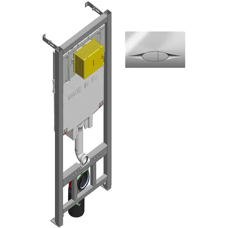 Инсталляция Jacob Delafon E21822-CP для унитаза.Характеристики: Цвет рамы: серый. Цвет клавиши смыва: хром. Материал рамы: сталь. Нагрузка на раму до 400 кг. Термостойкий бачок с защищенным от конденсата специальным кожухом. Объем смывного бачка: 3 и 6 л. Подвод воды сверху. Диаметр слива: 9 см. Монтажная глубина: 23.5 см. Монтажная высота: 109 см. Межосевое расстояние под крепеж. шпильки: 18 / 23 см. Монтаж: в капитальную стену и пол. В комплекте поставки: Инсталляция. Клавиша смыва. Крепления.