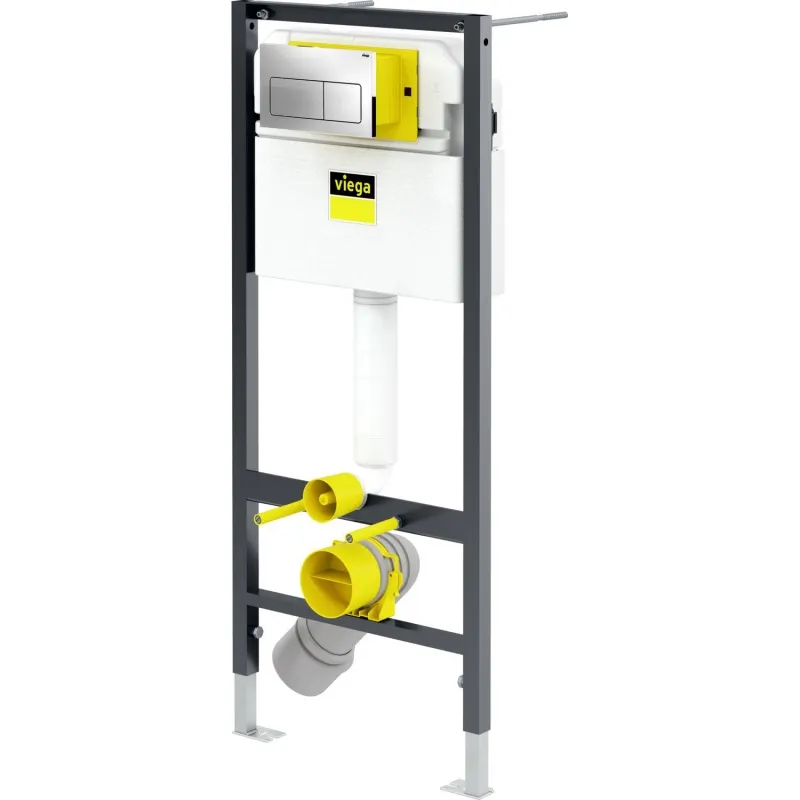 Инсталляция Viega Prevista Dry 792824 двойного смыва, для подвесных унитазов, 8524.10. Возможность адаптации для использования пожилыми людьми и людьми с ограниченными возможностями.Характеристики:Инсталляция: Материал: стальная рама (30x30) с порошковым напылением. Устойчива к влажности, защищена от появления ржавчины и коррозии. Заводская настройка смывного бачка: 3/6 л. Диапазон настройки экономного смыва: 2-4 л. Диапазон настройки полного смыва: 3,5-7,5 л. Подвод воды сзади, подключение R1/2. Регулируемый по глубине выпуск DN90 из полипропилена. Подходит для монтажа в капитальные стены, или на металлические опорные профили. Габариты (ШхВхГ): 490х1120х120 мм. Регулируемые ножки: 0-200 мм. Клавиша смыва Prevista 773 717. Цвет: глянцевый хром. Материал: пластик. Габариты (ШхВхГ): 220х130х10 мм. Двухрежимный смыв. Управление: механическое. В комплекте поставки: Монтажная рама. Клавиша смыва 773717 с установочным комплектом. Бачок скрытого монтажа 3H. Присоединительный комплект для унитаза. Крепежный комплект 8180.73. Набор для подключения воды. Соединительное колено для унитаза. Эксцентриковый переходник DN90/100.