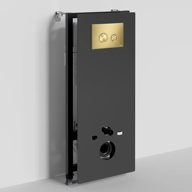 Инсталляция WasserKRAFT Abens 20TLT.010.ME.BL.MG01 для унитаза Черное стекло с клавишей смыва Золото матовое