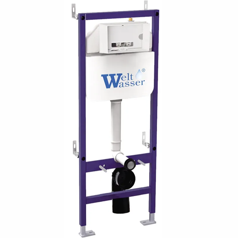 Инсталляция WeltWasser WW Bamberg 460 10000010285 для унитаза.Современная инсталляция из серии WW BAMBERG 460 предназначена для установки подвесного унитаза. Прочная самонесущая рама выполнена из первоклассной стали с порошковым напылением и подготовлена для облицовки. В комплекте поставляется уплотнитель для защиты плитки при фиксации рамы. Самое главное преимущество данной инсталляции, что есть дополнительные отверстия посередине рамы для долговечной установки. Это позволяет не бояться за нагрузку по весу на унитаз. Нагрузка до 410 кг.Так же важен размер. Ширина этой инталляции 46 см, что позволяет ее установить даже в узкое место. При установке чаша унитаза регулируется по высоте. Подключение воды осуществляется сзади и сверху. Система изоляции от конденсационной влаги значительно продлевает срок службы изделия. Покрытие бачка защитным пенопластом делает смыв воды бесшумным.Характеристики: Цвет рамы: синий. Материал: металл, пластик. Окрас рамы порошковым напылением. Размеры инсталляции (ШхВхГ): 460х1100х100 мм. Пластиковый бачок слива в пенопласте для бесшумного слива воды. Глубина бачка слива 120 мм. Усиленная рама. Регулируемая глубина до 70 мм. Усиленные регулируемые ножки от 0 до 200 мм. Крепление ножек к полу возможен в 4х вариантах. Уплотнитель между плиткой и унитазом. Подвод воды: сверху и сбоку. Межосевое расстояние под крепеж унитаза 180 и 230 мм. Диаметр слива: 90/110 мм. Установка: в капитальную стену и в пол. Дополнительный крепеж посередине рамы.