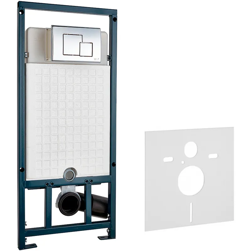 Инсталляция WeltWasser WW Marberg 507 10000005949+10000005953 для унитаза.Характеристики:Инсталляция: Цвет рамы: синий. Материал: металл, пластик. Окрас рамы порошковым напылением. Размеры инсталляции (ШхВхГ): 507х1120х100 мм. Пластиковый бачок слива в пенопласте для бесшумного слива воды. Усиленная рама. Регулируемая глубина до 50 мм. Усиленные регулируемые ножки от 0 до 200 мм. Уплотнитель шумопоглощающий между плиткой и унитазом. Подвод воды: сверху и сзади. Межосевое расстояние под крепеж унитаза 180 и 230 мм. Диаметр слива: 90/110 мм. Установка: в капитальную стену и в пол. Дополнительный крепеж посередине рамы. Клавиша смыва: Цвет: хром глянцевый. Материал: ABS-пластик. Размеры (ШхВхГ): 246х165х18 мм. Режим слива воды: две кнопки. В комплекте поставки: Инсталляция Инсталляция WeltWasser WW Marberg 507 10000005949: монтажная рама; смывной бачок; уплотнитель; фановая труба. Клавиша смыва WeltWasser WW Marberg 507 RD 10000005953.
