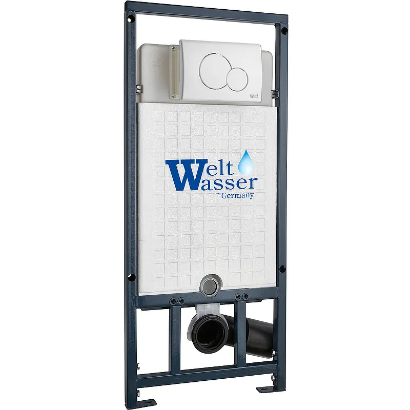 Инсталляция WeltWasser WW Marberg 507 RD WT 10000011213 для унитаза.Современная инсталляция из серии MARBERG 507 предназначена для установки подвесного унитаза. Прочная самонесущая рама выполнена из первоклассной стали с порошковым напылением и подготовлена для облицовки. В комплекте поставляется уплотнитель для защиты плитки при фиксации рамы. Самое главное преимущество данной инсталляции, что есть дополнительные отверстия посередине рамы для долговечной установки. Это позволяет не бояться за нагрузку по весу на унитаз. Нагрузка до 410 кг. При установке чаша унитаза регулируется по высоте. Подключение воды осуществляется сзади и сверху. Система изоляции от конденсационной влаги значительно продлевает срок службы изделия. Покрытие пластикового бачка защитным пенопластом делает смыв воды бесшумным. Двойная шумоизоляция - лучшее решение. Инсталляция оборудована элегантной кнопкой слива воды: полный смыв 6 л и экономный 3 л.Характеристики:Инсталляция: Цвет рамы: синий. Материал: металл, пластик. Окрас рамы порошковым напылением. Размеры инсталляции (ШхВхГ): 507х1150х150 мм. Пластиковый бачок слива в пенопласте для бесшумного слива воды. Усиленная рама. Монтажная глубина: 150 мм. Регулировка глубины до 50 мм. Усиленные регулируемые ножки от 0 до 200 мм. Уплотнитель между плиткой и унитазом. Подвод воды: сверху и сзади. Межосевое расстояние под крепеж унитаза 180 и 230 мм. Диаметр слива: 90/110 мм. Установка: в капитальную стену и в пол. Дополнительный крепеж посередине рамы.