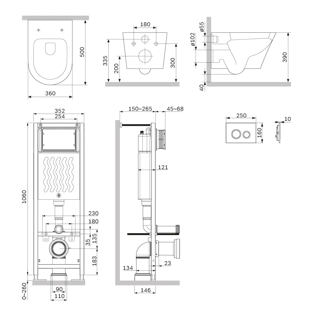 Максимально полный комплект поставки включающий все необходимые крепления патрубки звукоизолирующую прокладку. Экономия пространства благодаря узкой раме – 352 мм шириной. Подходит даже для самых малогабаритных ванных комнат. Заливной клапан с низким уровнем шума - Класс II согласно европейского стандарта EN 14124. Выдерживает нагрузку до 400 кг. Подходит для унитазов любых размеров. Высокая прочность и износостойкость. Увеличенная толщина профиля двойные прокладки слива и подачи воды. Подключение воды сзади сверху. В комплекте механическая двухрежимная клавиша из ABS пластика в цвете черный матовый. Коническая чаша унитаза Sense Flashclean со строгими выверенными формами - традиционный немецкий дизайн созданный в собственной студии AM.PM Design. FlashClean - новое поколение безободковых унитазов без использования пластика: 100 гигиеничности 0 брызг. Безупречная поверхность: изготовлен из стекловидного фарфора самого гигиеничного и влагостойкого материала. Компактное дизайнерское решение: идеально впишется в санузел любого размера благодаря проекции 50 см. В комплекте быстросъемное сиденье из дюропласта с механизмом плавного закрывания. Материал сиденья дюропласт устойчивый к появлению царапин в сочетании с креплениями из нержавеющей стали гарантируют долговечность сиденья. ""