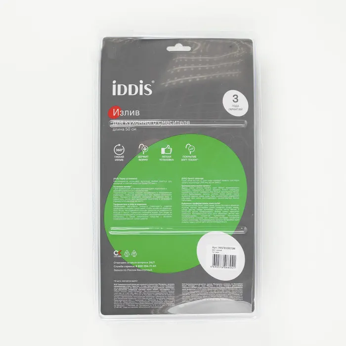 Гибкий высокий (50 см) излив IDDIS® предназначен для подачи поступающей из смесителя воды. Изгибаясь под любым углом, он направляет струю в любую нужную сторону, что делает смеситель особенно удобным для использования на кухне. Изделие отличается своей долговечностью и безопасностью даже при длительном контакте с водой благодаря качественному силикону, который используется при производстве. Матовый черный излив выполнен в современном стиле – он идеально впишется в пространство кухни городской квартиры или загородного дома. Модель представлена в нескольких цветах и подходит для комплектации новых или замены изношенных элементов смесителей. • Съемный пластиковый аэратор M18 гарантирует ровный и мягкий поток воды без брызг. Встроенный в аэратор ограничитель потока сокращает расход воды без ущерба комфорту. Расходы на коммунальные платежи снижаются. • Гарантия на аксессуары к смесителям IDDIS® – 3 года. (с) Авторский текст, февраль 2022 г.
