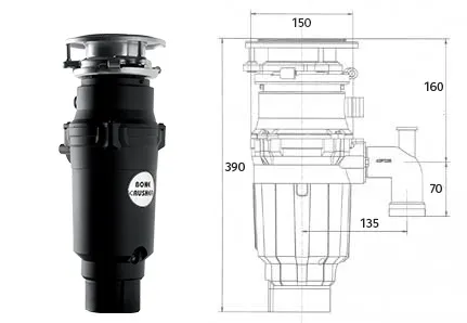 Измельчитель пищевых отходов бытовой BoneCrusher 910 /Slim line арт-ВС 910 AS-Slim Line