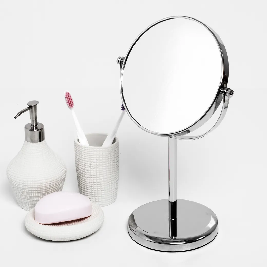 - Универсальность в применении: Данное зеркало для ванной комнаты оснащено двумя поверхностями — стандартной и с увеличением, что позволяет использовать его для различных нужд.