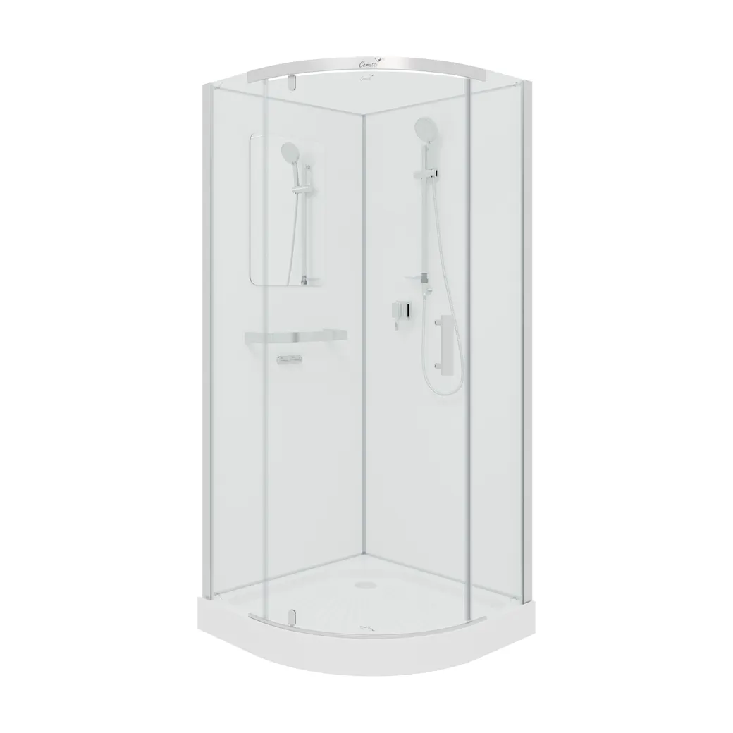 Кабина KORRA90T душевая Ceruttispa. Размер: 90х90х205 см Белый поддон из ABS-пластика, Профиль хром, алюминиевый, Переднее стекло закаленное, прозрачное, толщиной 5 мм, Заднее стекло закаленное, белое, толщиной 5 мм с зеркальным покрытием, Ручка из нержавеющей стали, Профиля верхний и нижний из нержавеющей стали в цвете хром, Металлический смеситель в цвет профиля, Ручной душ D16 с держателем, Стеклянная полка с рамой в цвет профиля, Крючок, В комплекте сифон антизапах. Поддон с бортиком. Универсальная сборка: собрать модель можно право-/левосторонней. Внимание! Производитель оставляет за собой право вносить изменения в конструкцию и комплектацию моделей без предварительного уведомления!