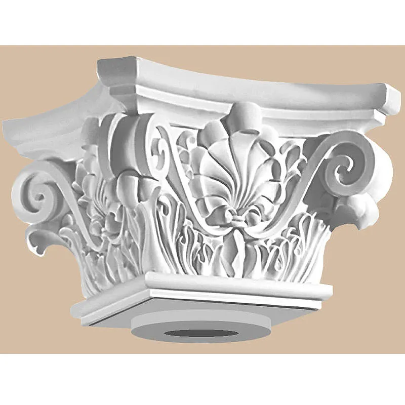 - Капитель белого цвета легко сочетается с различными отделочными материалами, что делает его универсальным элементом декора.