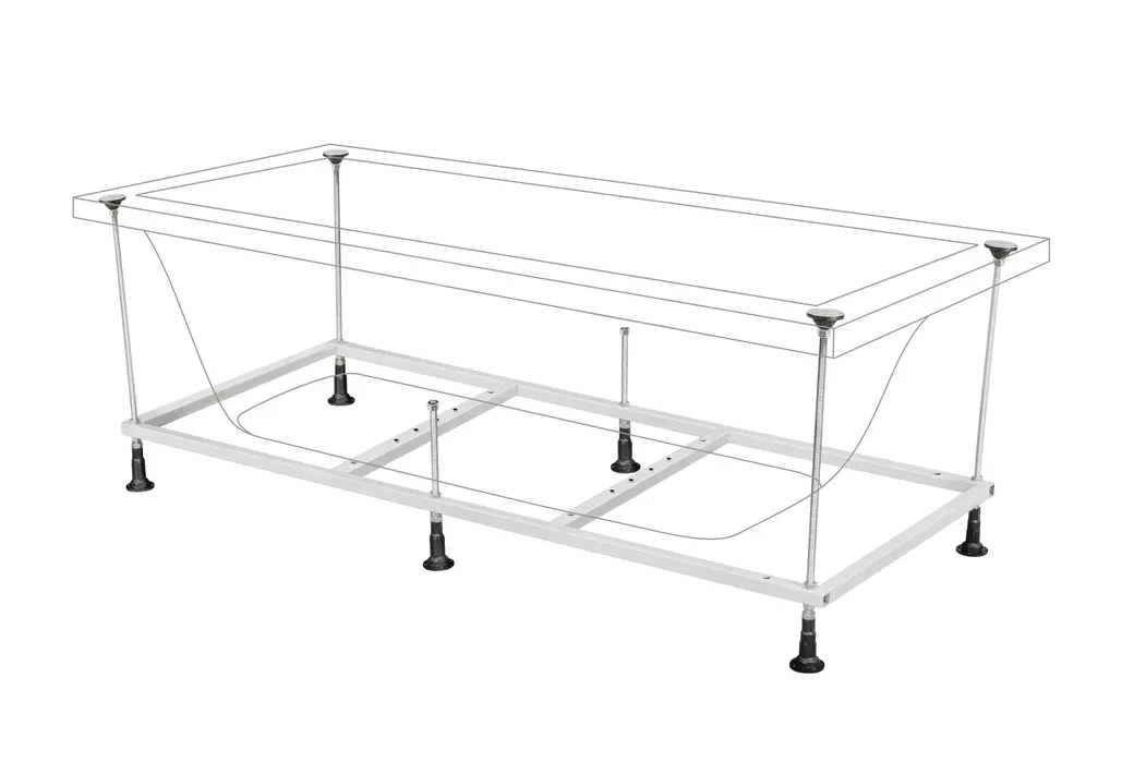 Сварная рама для прямоугольной ванны - надежное и устойчивое решение для установки ванны. Благодаря дополнительной обработке металлической конструкции практически исключается коррозионное воздействие, а регулируемые ножки позволяют установить ванну даже на неровной поверхности.
