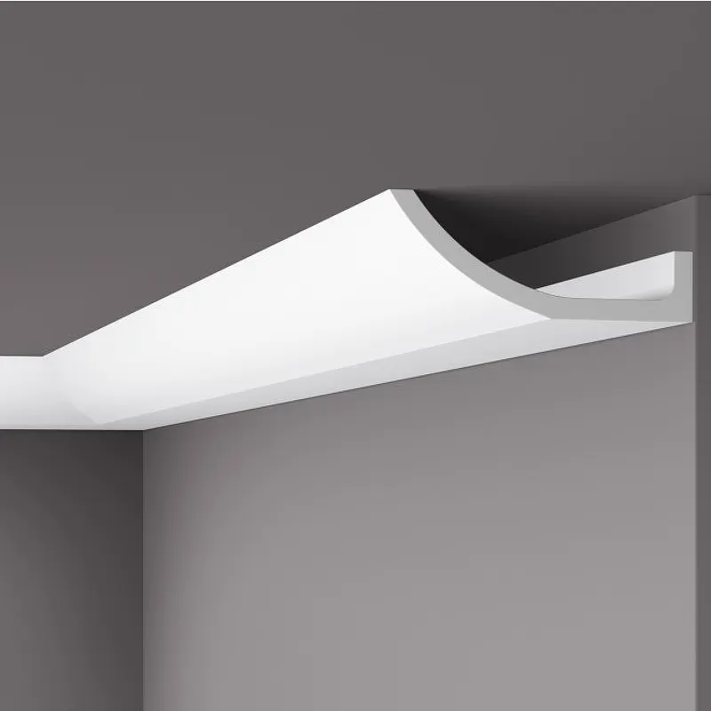 - Карнизы 2000x70x18 мм позволяют аккуратно монтировать скрытую подсветку, создавая уютную атмосферу в помещении.