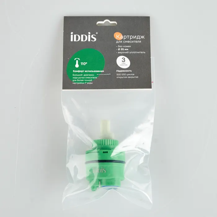 Низкий картридж IDDIS® стандартного диаметра (35 мм) для экономичного управления расходом и температурой воды, подаваемой из смесителя. Позволяет осуществить максимально мягкий и точный контроль благодаря большому углу поворота (110 градусов) и плавной работе движущего механизма изделия. Картридж IDDIS® работает надежно и бесшумно, обеспечивая комфортный поток воды в любой среде, в том числе в условиях ремонта водопроводных сетей. Изделие устойчиво к перепадам температуры и давления, абсолютно безопасно даже при длительном контакте с водой. В верхней части картриджа есть уплотнительное кольцо для создания герметичного соединения со смесителем. • Увеличенный срок бесперебойной службы картриджа IDDIS® (более 500 000 циклов) обусловлен высоким качеством его комплектующих: изделие оснащено пластинами, плотно притертыми между собой и изготовленными из износостойкой керамики. • Керамический картридж IDDIS® обладает повышенной ударопрочностью и долговечностью благодаря надежному корпусу из сверхпрочного пластика (полиамида), способному выдерживать гидроудары до 35 бар. • Гарантия на картриджи IDDIS® – 3 года. (с) Авторский текст, сентябрь 2021 г.