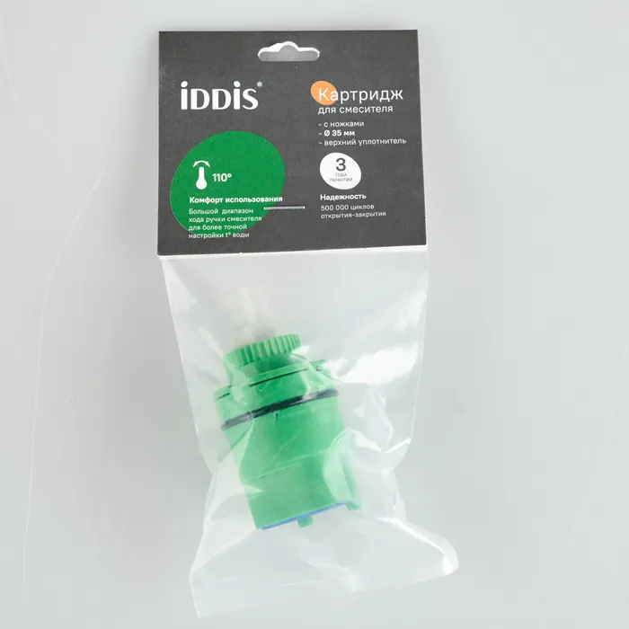 Высокий картридж IDDIS® стандартного диаметра (35 мм) для экономичного управления расходом и температурой воды, подаваемой из смесителя. Позволяет осуществить максимально мягкий и точный контроль благодаря большому углу поворота (110 градусов) и плавной работе движущего механизма изделия. Картридж IDDIS® работает надежно и бесшумно, обеспечивая комфортный поток воды в любой среде, в том числе в условиях ремонта водопроводных сетей. Изделие устойчиво к перепадам температуры и давления, абсолютно безопасно даже при длительном контакте с водой. В верхней части картриджа есть уплотнительное кольцо для создания герметичного соединения со смесителем. • Увеличенный срок бесперебойной службы картриджа IDDIS® (более 500 000 циклов) обусловлен высоким качеством его комплектующих: изделие оснащено пластинами, плотно притертыми между собой и изготовленными из износостойкой керамики. • Керамический картридж IDDIS® обладает повышенной ударопрочностью и долговечностью благодаря надежному корпусу из сверхпрочного пластика (полиамида), способному выдерживать гидроудары до 35 бар. • Гарантия на картриджи IDDIS® – 3 года. (с) Авторский текст, сентябрь 2021 г.