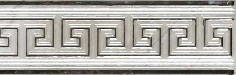 Керамический бордюр Ape Rex Cenefa Coliseum Silver 8х25 см с геометрическим орнаментом.