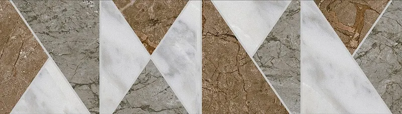 Керамический бордюр с рисунком под мрамор и геометрическим узором.